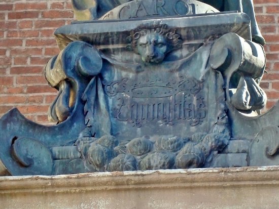 В дясно от входа на църквата има статуя на сан Карло Боромео (кардинал и архиепископ на Милано), която е дело на Диониджи Бусола от 1612 г. Първоначално статуята е била на площад Кордузио, но след това е преместена на настоящето си място. От страни на статуята добре се виждат детайли от герба на фамилията на Боромео.